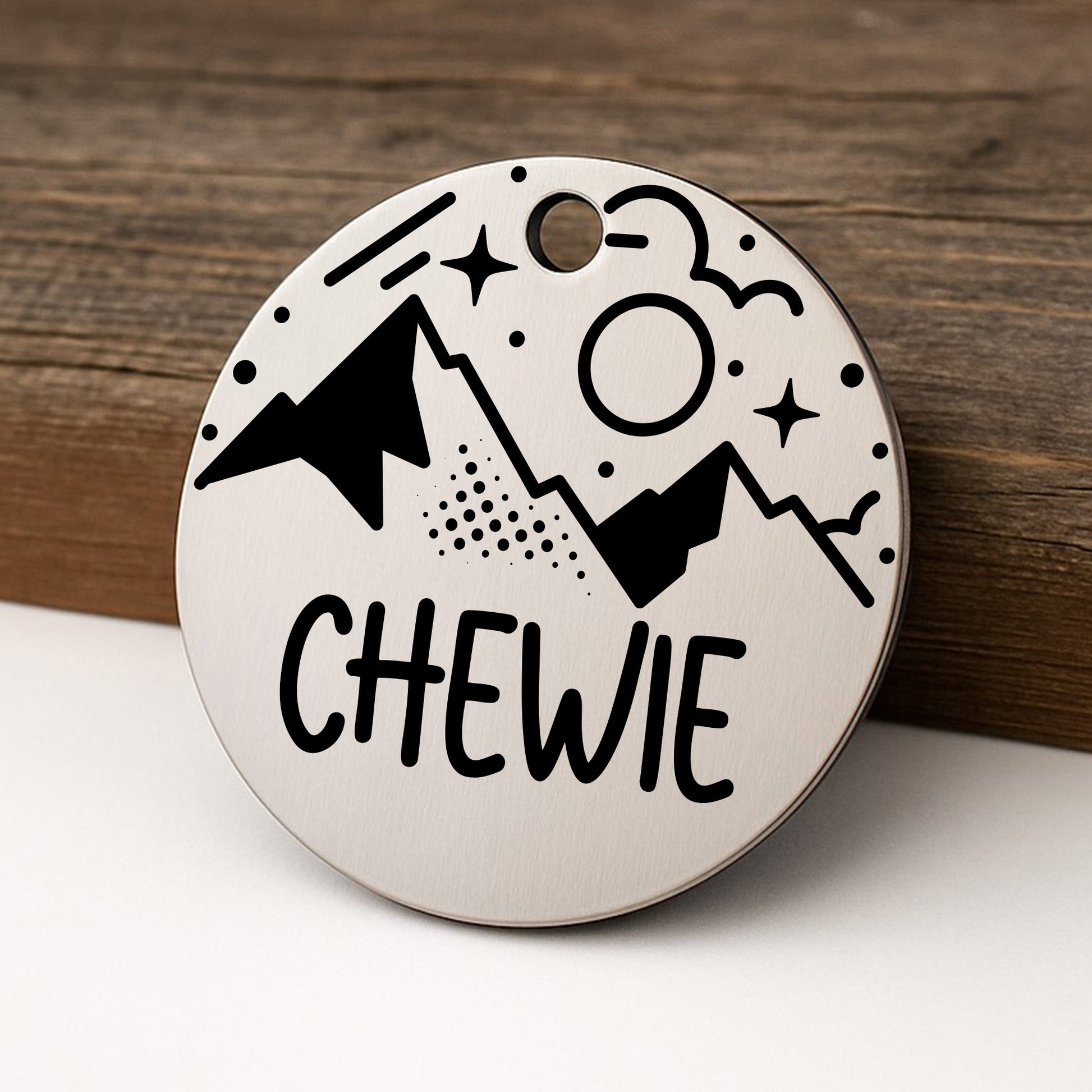 'Space Mount' Pet ID Tag with Mountains for Dogs and Cats - Personalized and Engraved Stainless Steel Pet ID Tag